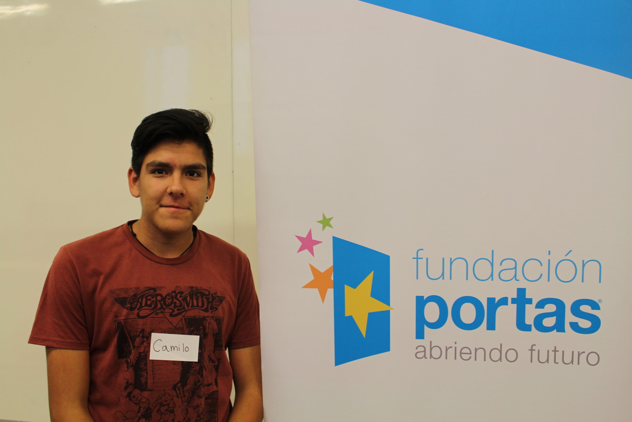 Camilo Godoy, tiene 17 años y está estudiando Ingeniería Civil Eléctrica en la USACH. “Voy a ser el primer profesional de la familia si es que logro terminar mi carrera y esa es mi gran meta.” Camilo supo sobre la existencia de la Fundación por su colegio, “yo recién entendí lo que realmente hace Portas cuando fui a mi primera reunión y me interesó muchísimo”. Camilo vive con su mamá que es asistente de venta en Hites, y su hermano de 13 años. “Mi sueño es terminar mi carrera y ayudar a mi familia, para salir de donde estamos hoy. Mi mama que está sola, le ha costado mucho salir adelante y lo ha logrado educándonos a nosotros y lo mínimo que puede hacer un hijo es agradecerle de esa manera.”