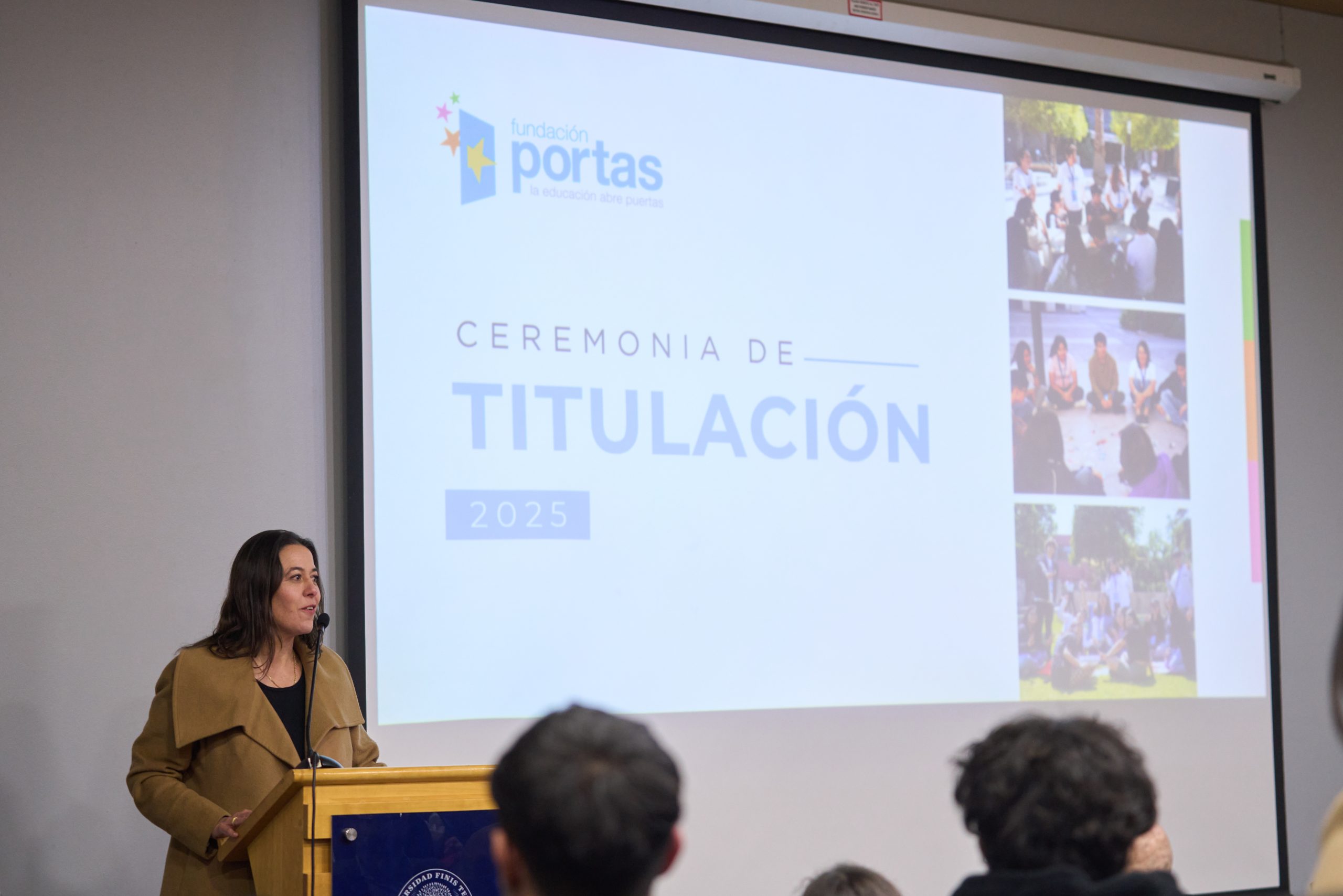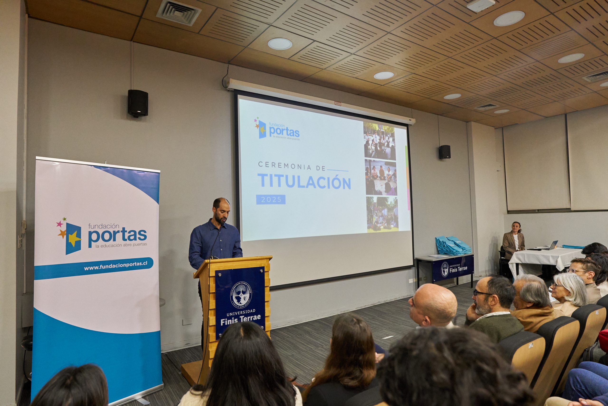 Este jueves 5 de junio se realizó una nueva ceremonia de titulación del programa Abriendo Futuro de Fundación Portas. El encuentro tuvo lugar en las dependencias de la Universidad Finis Terrae y reunió a 33 jóvenes titulados, quienes asistieron junto a parte de sus familias para celebrar este importante hito en sus vidas.