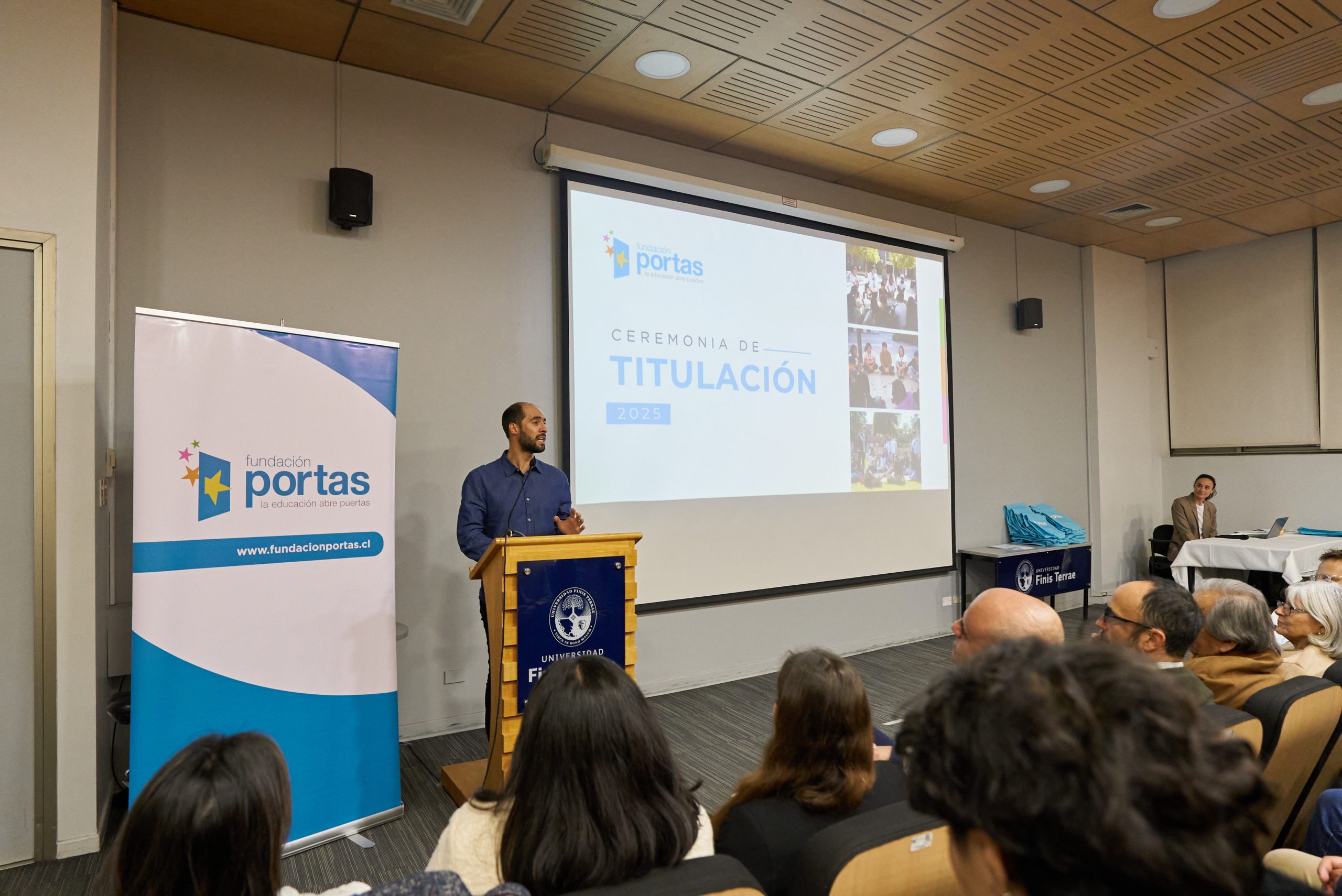 Durante la jornada, las y los jóvenes recibieron su diploma de titulación del programa, el cual reconoce el cierre de un proceso formativo acompañado de manera integral por el equipo de Fundación Portas. A través de intervenciones personalizadas y trabajo en comunidad, el programa busca fortalecer las trayectorias de jóvenes que son los primeros de sus familias en acceder y titularse de la educación superior.