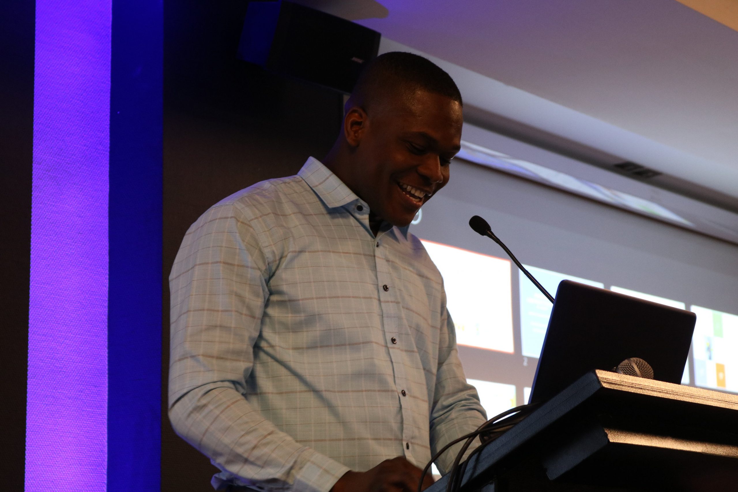 Muy Buenos días. Soy Jacky Pierre, alumno de ENAC y estoy estudiando Técnico en Administración de Empresas. Cada uno tiene una historia o tiene una experiencia que lleva en su interior. La mía es incomparable, igualdad. Estuve en una carrera y tenía como mi adversario a Usain Bolt. Yo escuché voces gritándome, despreciándome: “Jacky, tú no puedes, te falta habilidad, no tienes dinero para enfrentar este adversario, te falta resistencia y encima la carrera es muy larga. Al otro lado, tenía apoyadores… un grupo tremendo, motivado, maravilloso, intrépido que se llama “Construye Tu Futuro” y “Fundación Portas” de repente escucho las voces: “¡Jacky; Vamos, Tú puedes, ¡no te desanimes!”
