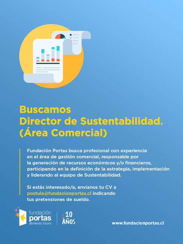 Fundación Portas está buscando a un Director para el área de Sustentabilidad. El cargo reportará directamente al Gerente General y tiene como objetivo principal la generación de recursos económicos / financieros, la participación en la definición de la estrategia y a cargo de su implementación, y liderar al Equipo de Sustentabilidad. Si te interesa postular, [...]